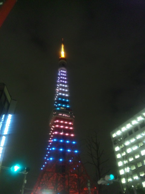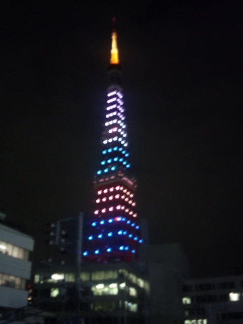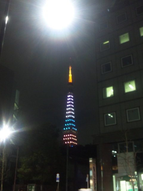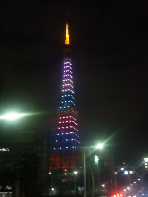 今日は東京タワーが嵐とのコラボで5色にライトアップってことで、見て帰りました。
