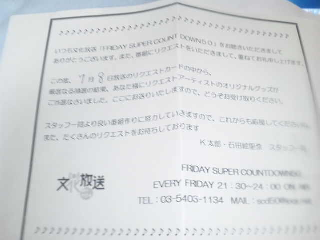 スパカンでリクエストしたら抽選で5名にリクエストしたアーティストお宝グッズが当たるのですが、先週ももちろんTimeをリクエストしたんですね。